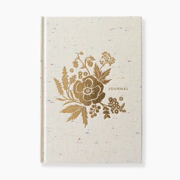 An elegant bookish hardcover notebook designed for readers, writers, and list lovers. This cream journal features a vertical stack of gilded books along the edge, making it a standout reading journal, TBR log, or literary gift. A beautiful staple for bookstores and stationery boutiques. Features: - Size: 6.25" x 8.25" - 200 gold-edged lined pages - Hardcover, book-bound construction - Includes 2 satin ribbon bookmarks Great for: - Reading journals - To-be-Read lists - Book clubs - Bookstore gifting - Literary displays